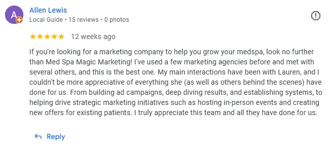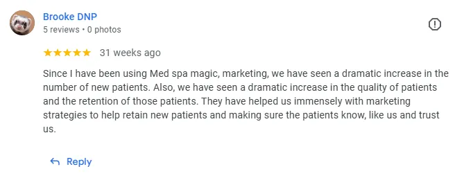 We’re no fly-by-night. We’ve been serving local businesses and medical offices since 2012! Anyone can set up a Google Ads account, launch up a Facebook ad or send a newsletter…but, as with most things, the devil is in the details when it comes to making those platforms really WORK to produce meaningful results for your business. We have the experience and expertise to maximize the value of your marketing efforts and to increase the chances that patients choose YOU over the competition next time they are in need of services. We've taken clients from $30k/month in revenue past $100k/mo, and multi-million dollar med spas into 8-figure med spas!